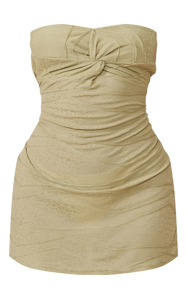 Robe droite bustier texturée vert sauge torsadée