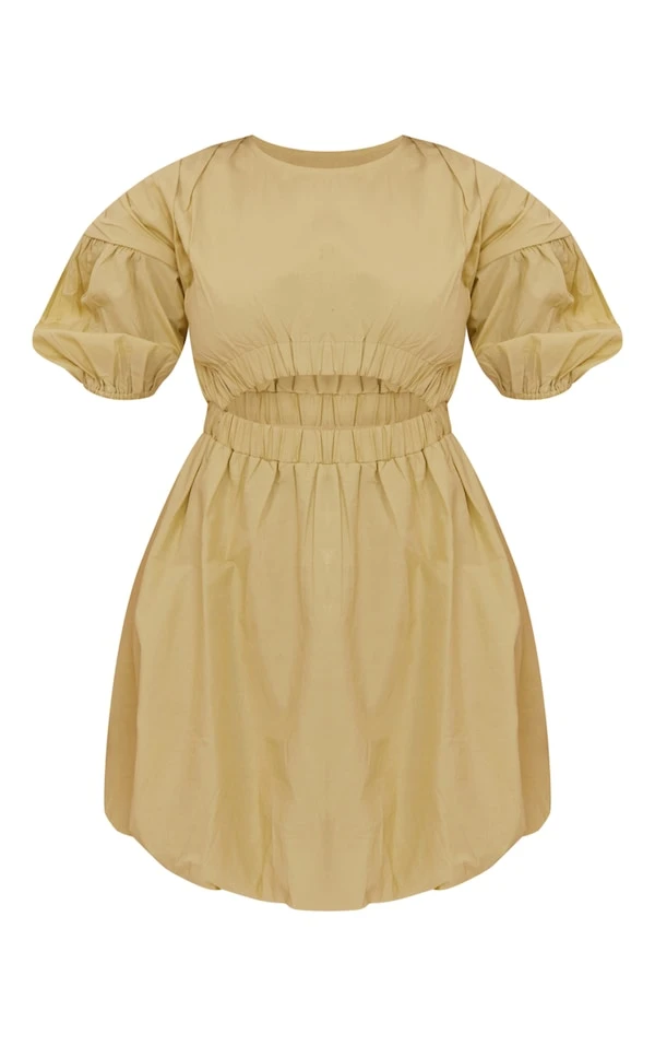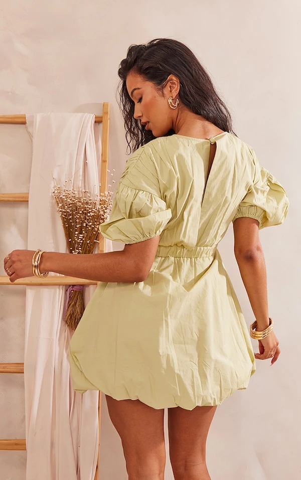 Robe droite en coton et popeline vert sauge à manches bouffantes