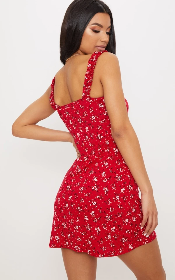 Cette robe rouge à imprimé floral est un must have de l’été. Portez-la avec une paire de sandales à lacets et complétez votre look avec vos lunettes de soleil préférées. Yass girl!