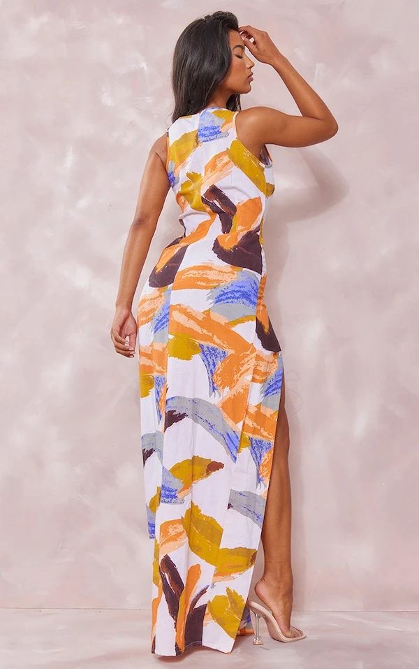 Direct dans le panier, cette robe à la coupe longue très classe ! C’est impossible de passer à côté de sa couleur blanche canon, de son design à imprimé abstrait et de sa matière en effet lin tendance. On vous conseille de la porter avec des talons transparents pour attirer tous les regards. Amazing !