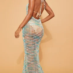 Tellement belle dans cette robe à la coupe longue. On adore son coloris cobalt flatteur, sa large découpe sur le ventre et son design très déchiré hyper canon. Le mood est très mermaid et on adore ce look de plage. Comme une envie de partir en vacances avec bae cet été !