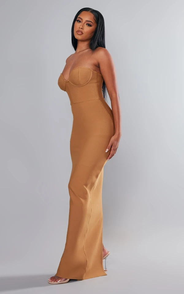 Divine, dans cette robe bustier à la coupe longue très classe ! Avec sa couleur camel délicieuse et son design à derrière fendu très cool, cette pièce est à shopper de suite. On aime la porter avec des talons et des bijoux dorés. Et vous, vous la portez avec quoi ?