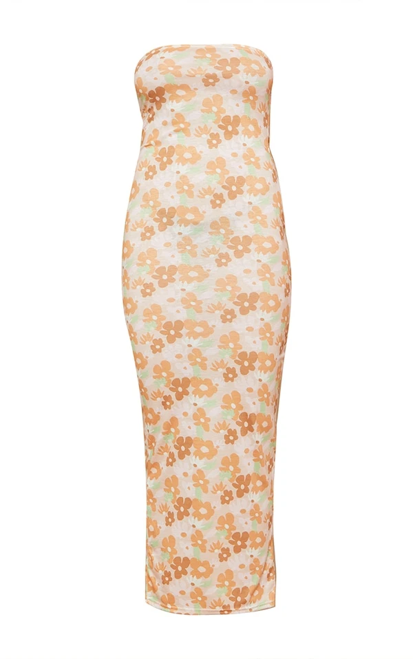 Cette robe nous met tout de suite dans un bon mood ! Avec son imprimé à fleurs très 70’s, son coloris gris pierre et sa longueur, c’est impossible de résister. On la porte avec des compensées de couleur marron. Un crush.