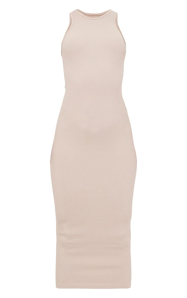 Robe longue côtelée structurée gris pierre détail contours à dos nageur