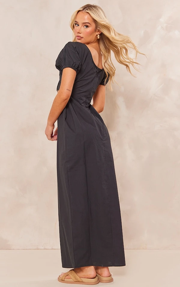 Robe longue en coton noir à découpe devant