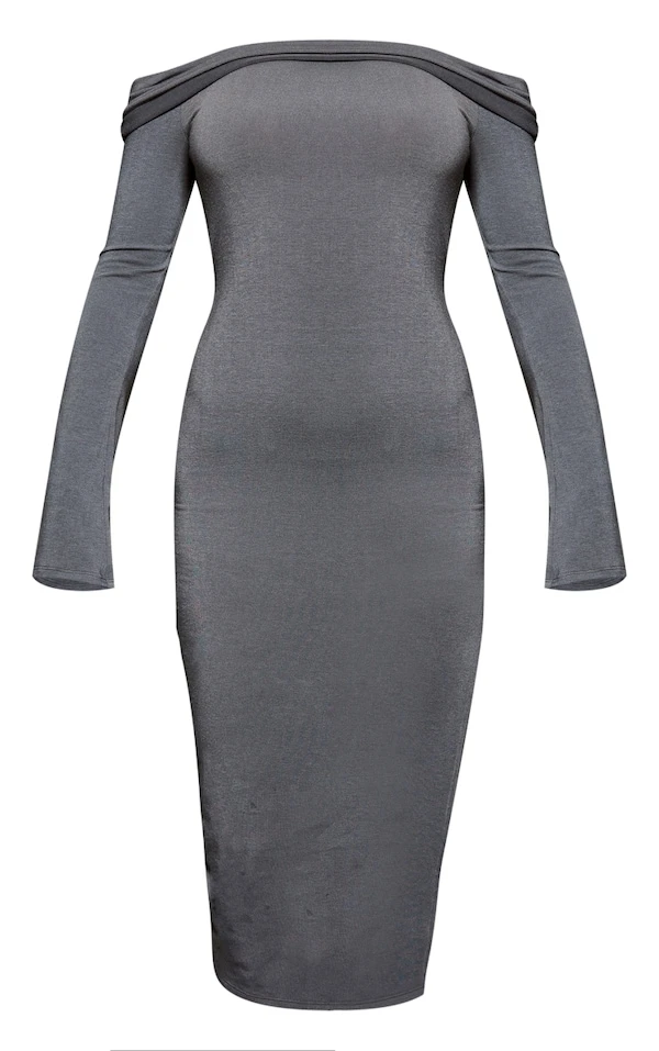 Robe longue en jersey gris anthracite à manches évasées et détail contours