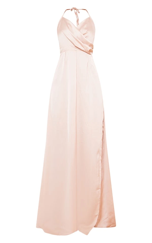 Robe longue fendue satinée champagne