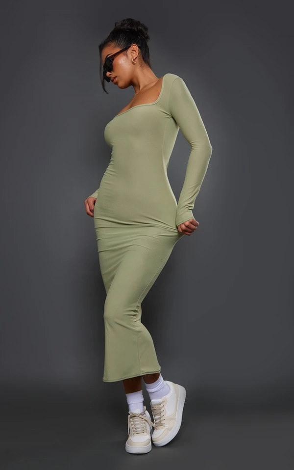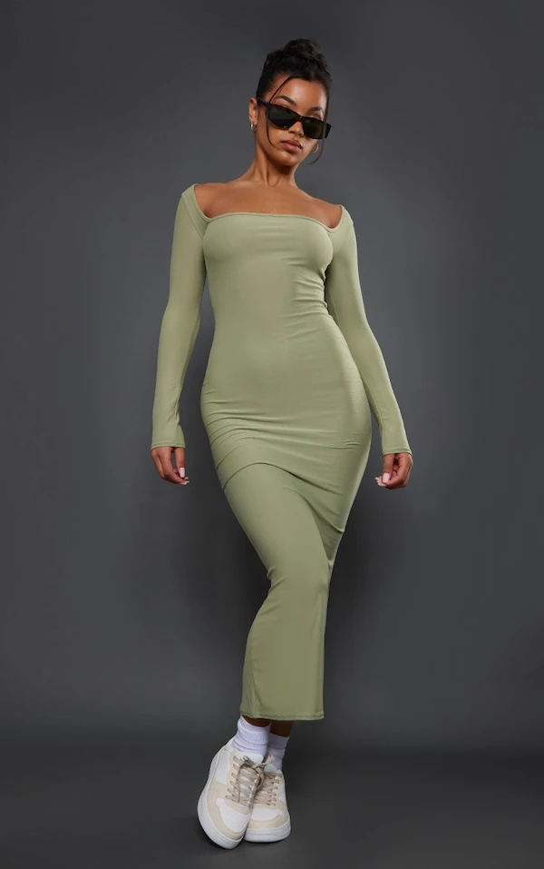 Coup de coeur sur cette robe à la coupe longue. On est totalement fans de sa couleur kaki, de sa matière douce et de son design à col rond. Portez cette robe avec une paire de baskets et quelques accessoires, tout simplement. Vous allez faire sensation !