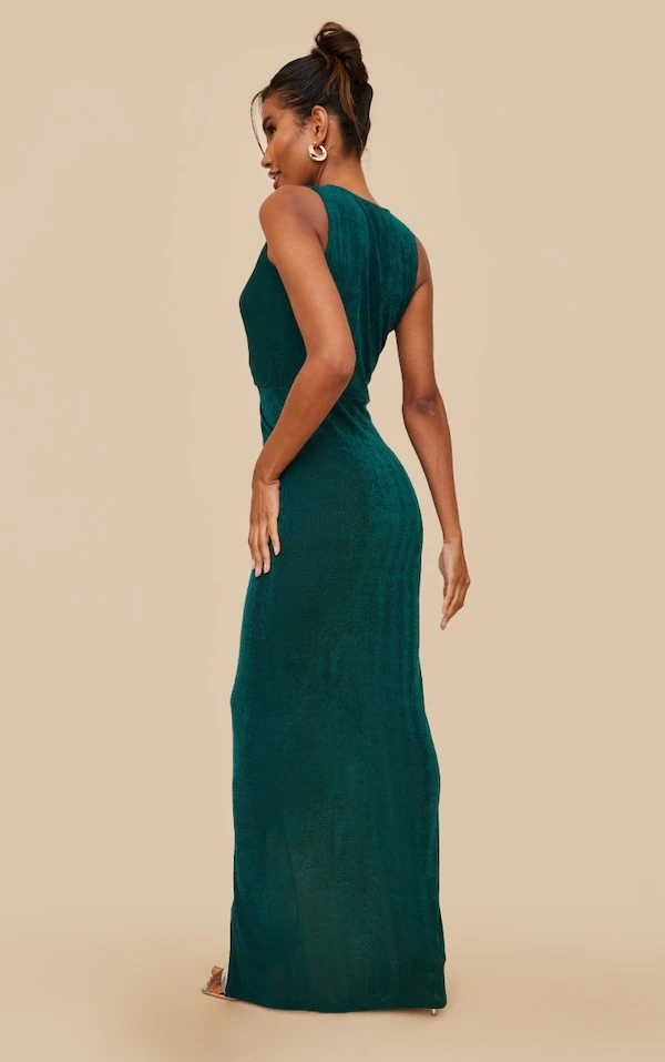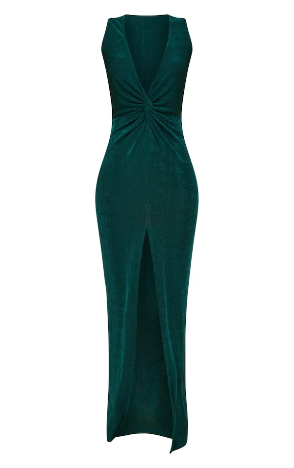 Robe longue moulante en acétate vert émeraude à détail torsadé