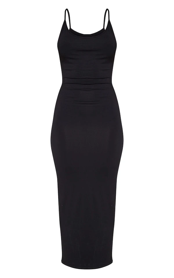 LA robe à porter tout les jours pendant la belle saison. Avec sa couleur classique noire et sa coupe à bretelles échancré sur les côtés. On la porte avec des sandales et une paire de lunettes de soleil pour un look canon les girls.