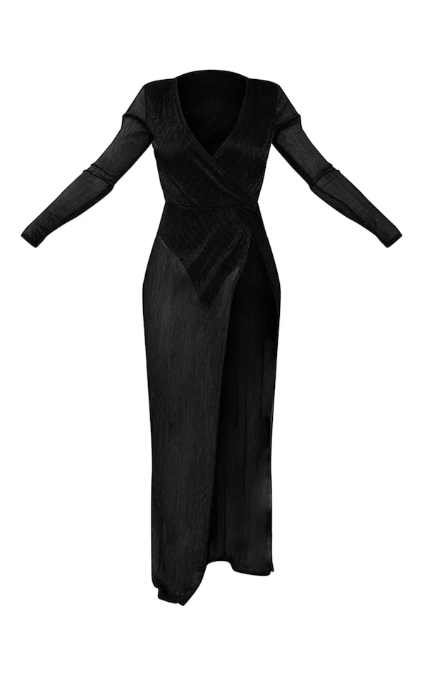 Une star de cinéma dans cette robe à la coupe longue ! Sa matière plissée est super belle et on adore son coloris noir magnifique et son design à manches longues. Plus qu’à enfiler une paire de talons hauts et des boucles d’oreilles XXL. So glam !