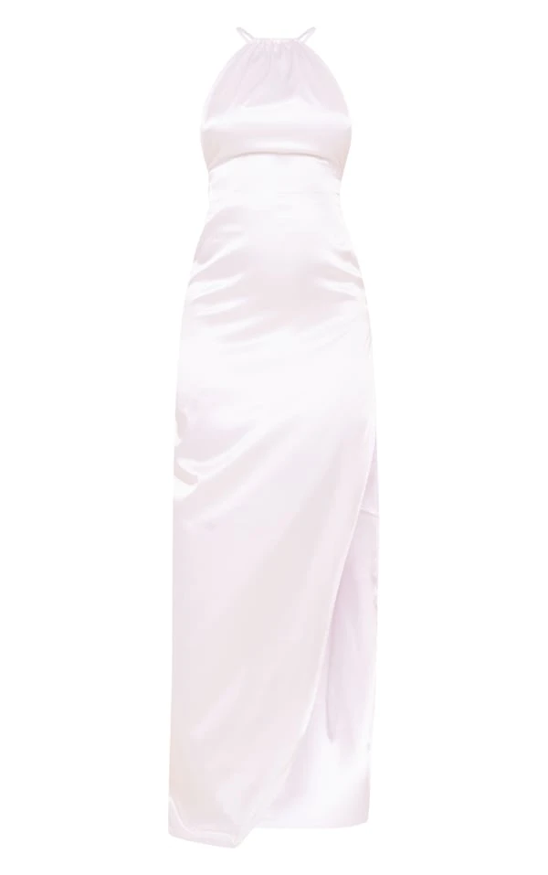 Robe longue satinée blanche dos nu à nouer dans le dos