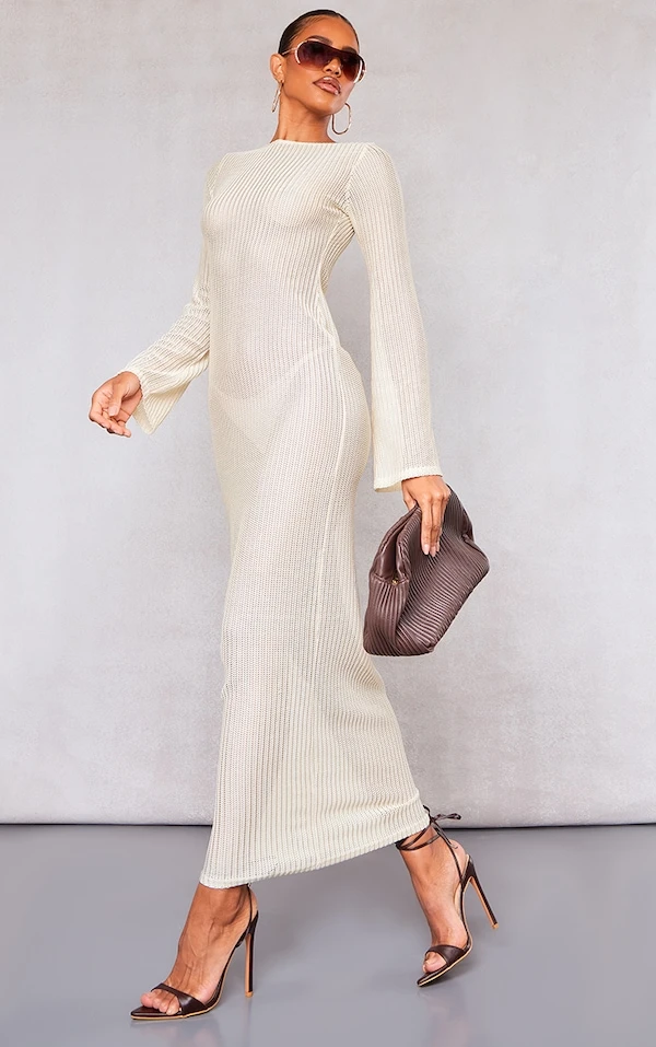 Le crush est absolument immédiat sur cette robe à la coupe longue ! On adore sa matière texturée stylée, son coloris crème canon et son design à manches longues super flatteur. Elle est à assortir à une paire de mules à talons, à des créoles et à un simple petit sac. De toute beauté !