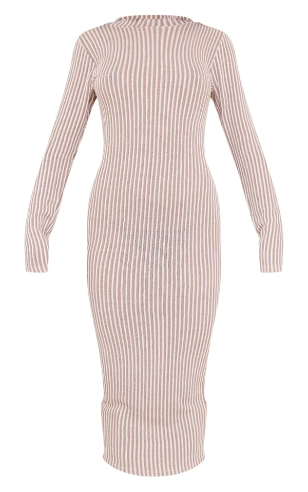 Tellement belle dans cette robe à la coupe mi-longue. On aime sa matière côtelée bicolore, la douceur de sa couleur sable et son design à col montant. Pour une soirée, on aime la porter avec une paire de mules et quelques accessoires, tout simplement !