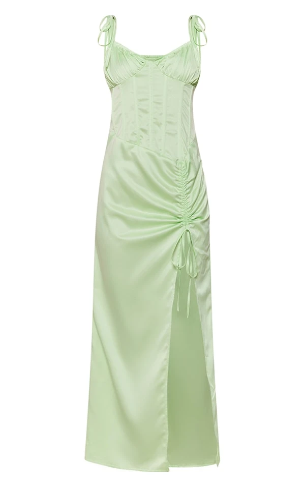 Robe mi-longue vert sauge à détail corset et bretelles