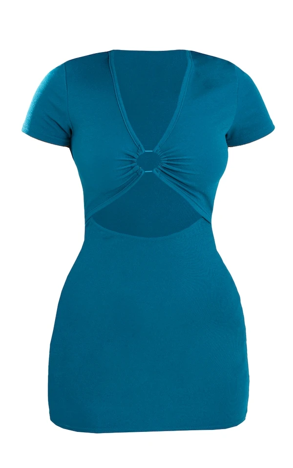Robe moulante bleu ardoise à manches courtes et buste élastique