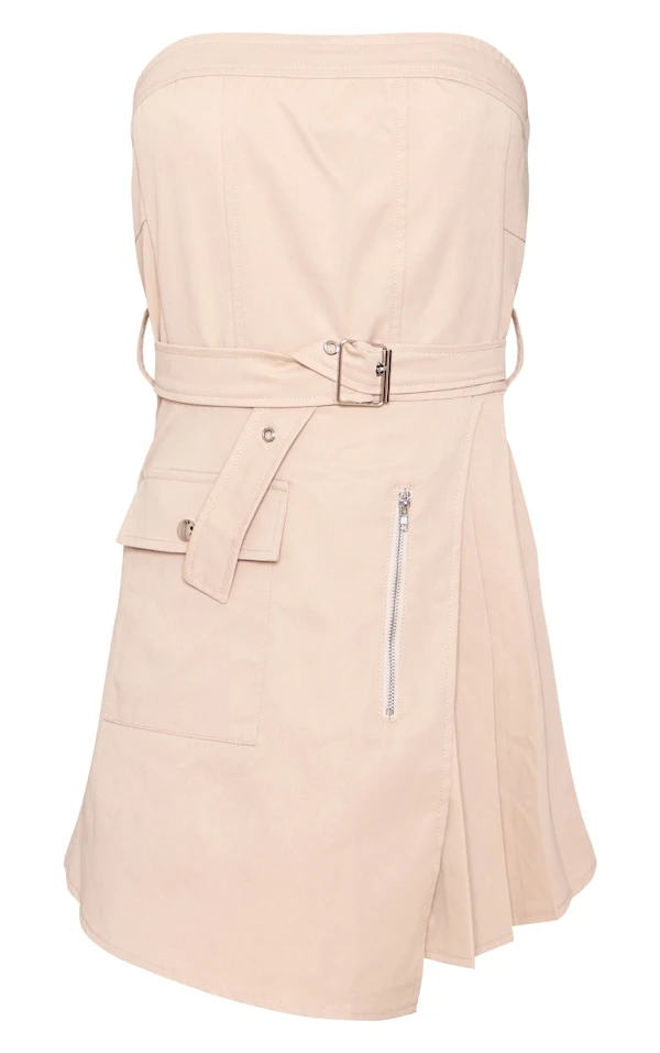 Robe moulante cargo gris pierre plissée à ceinture nouée