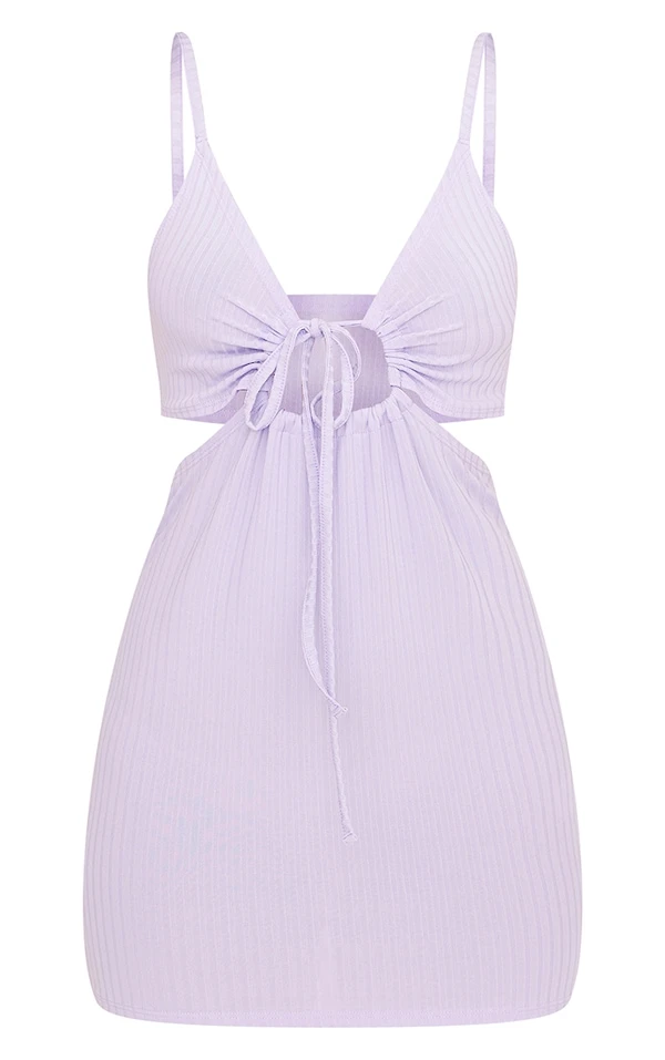 Robe moulante côtelée lilas découpée à bretelles