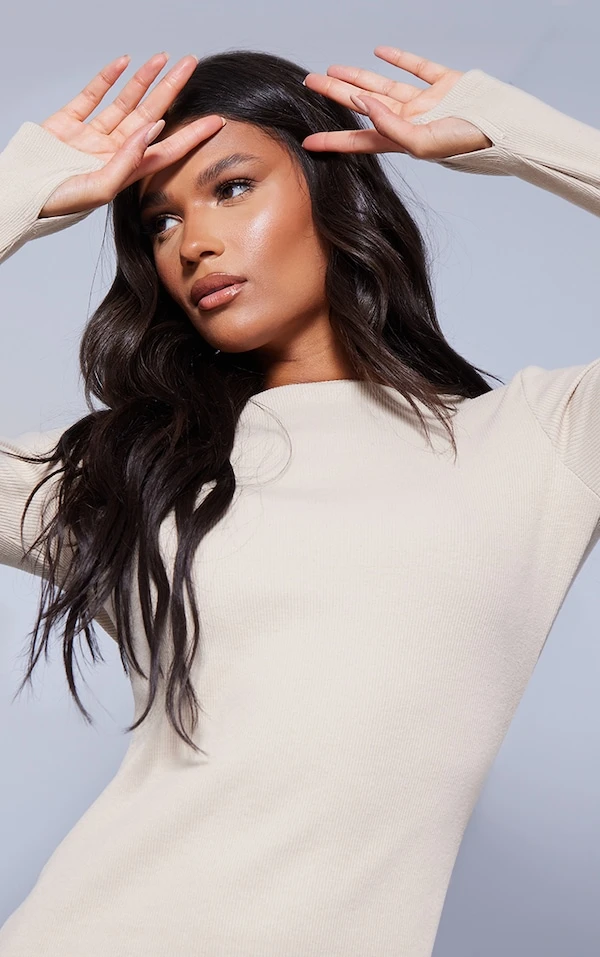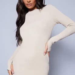 Cette robe moulante est incroyable ! Avec sa couleur sable, sa matière côtelée et son détail pouce, elle nous met tout de suite dans un bon mood. Il ne manque plus que des bottes hautes et un long manteau. Votre look vous propulse au sommet du style sans effort.