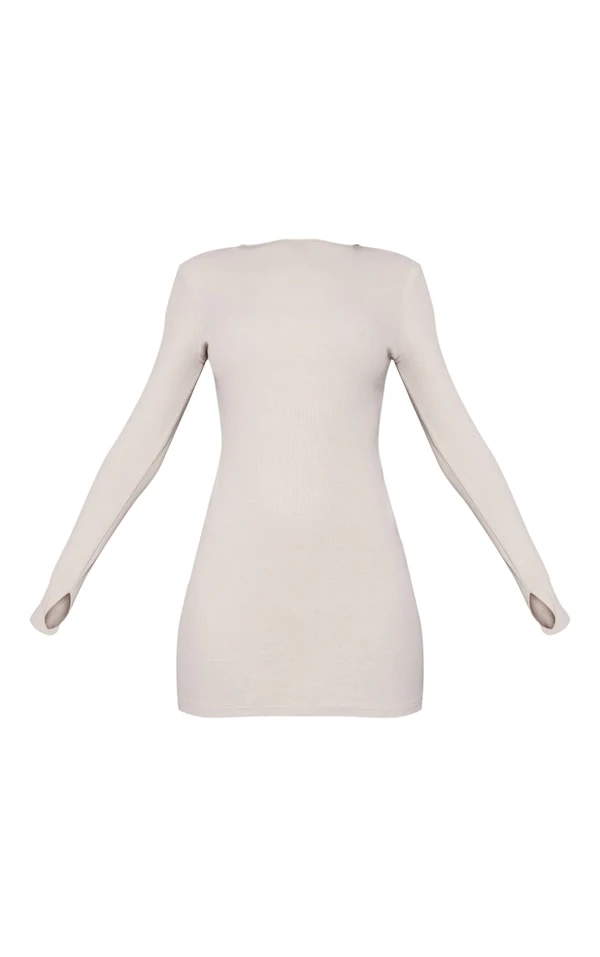 Robe moulante côtelée sable à découpe goutte d’eau au dos et détail pouces