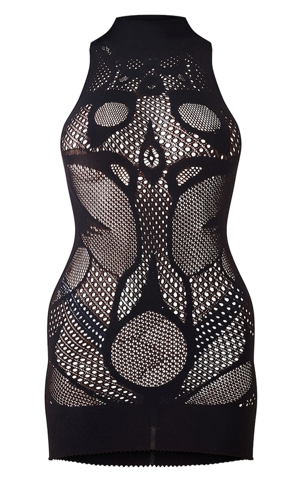 Robe moulante découpée noire sans coutures à col montant