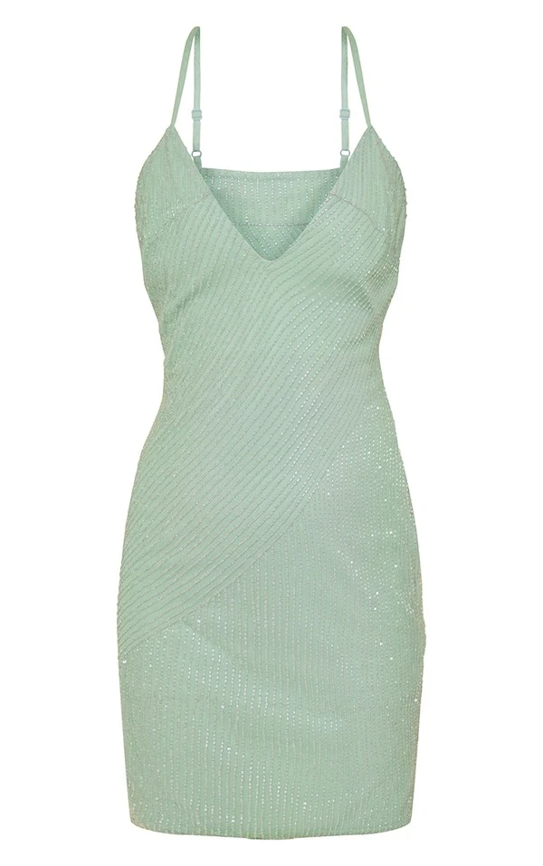 Hot avec un twist glam cette robe moulante ! Entre sa couleur vert menthe, ses ornements très boujee et son décolleté, elle nous a fait craquer. Il ne manque que des talons et une pochette pour le look de soirée finalisé en un instant !