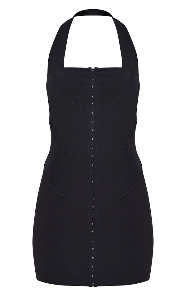 Robe moulante dos nu en maille tissée stretch noire à oeillets & crochets