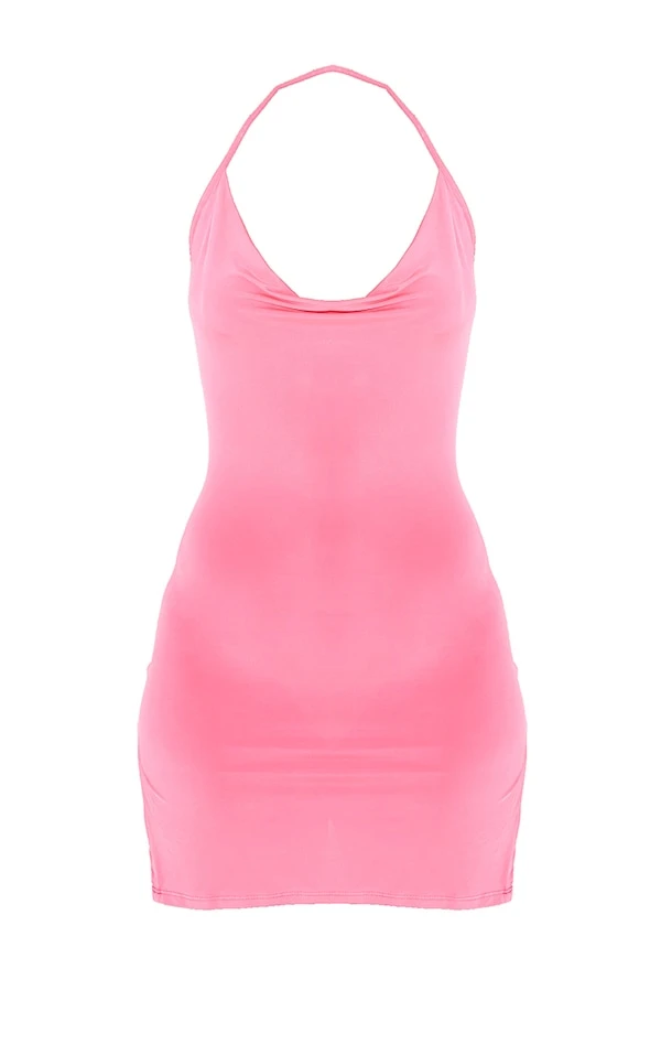 Impossible de se louper dans cette robe moulante. On est hyper fans de son coloris rose flashy et de son design à col bénitier très flatteur. Plus qu’à ajouter des talons et quelques bijoux.