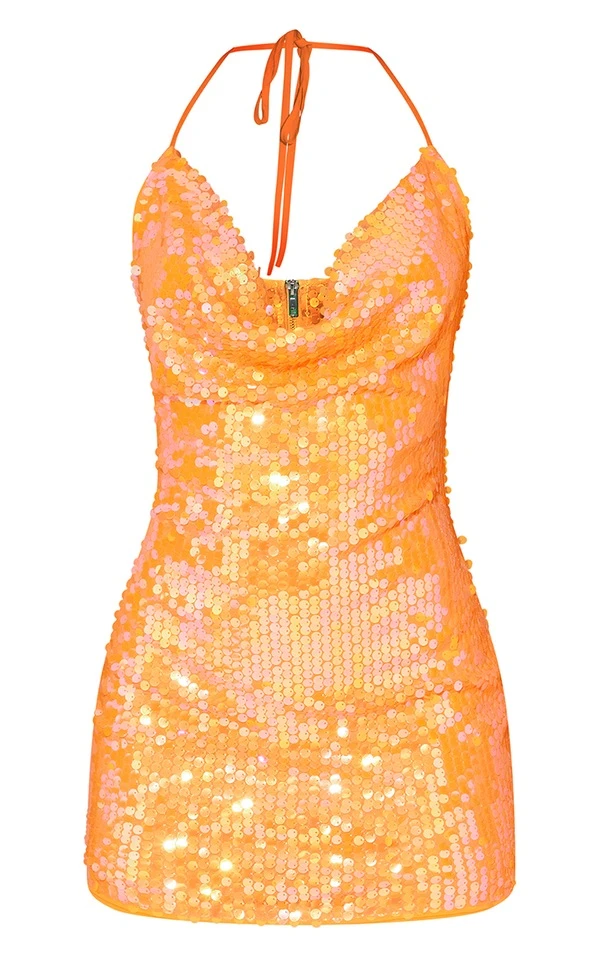 Trop belle dans cette robe à la coupe moulante flatteuse. Avec sa couleur orange, ses sequins, son dos nu et son col bénitier, elle a tout pour plaire. Portée avec une paire de mules et quelques accessoires dorés, elle vous assure un look mémorable à la prochaine soirée ou en festival !