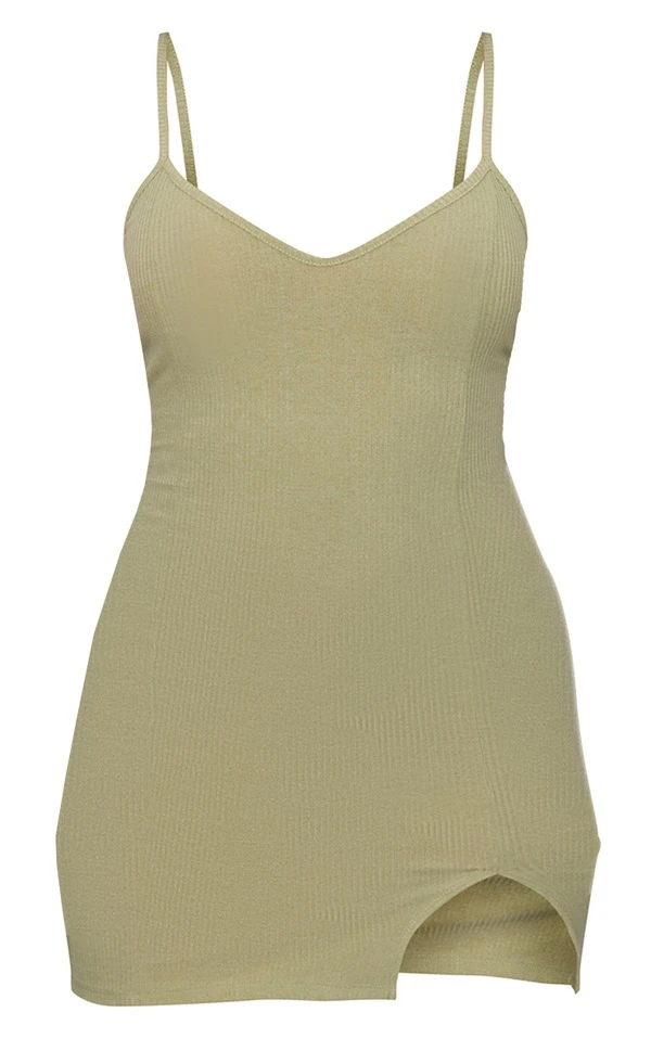 Robe moulante kaki à bretelles et ourlet fendu