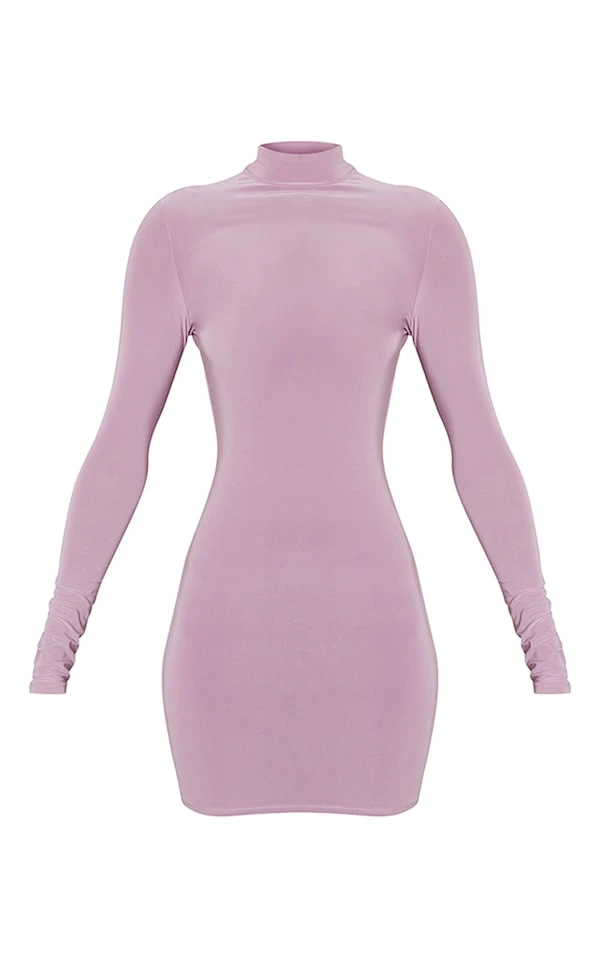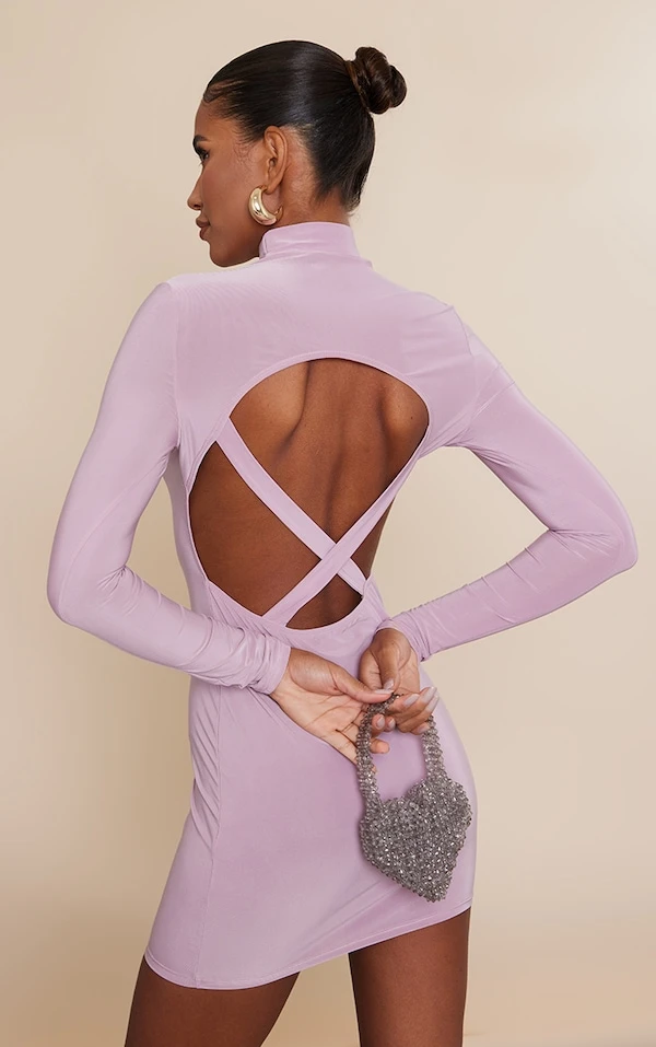 Robe moulante mauve découpée dans le dos croisée à manches longues