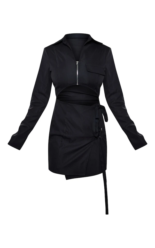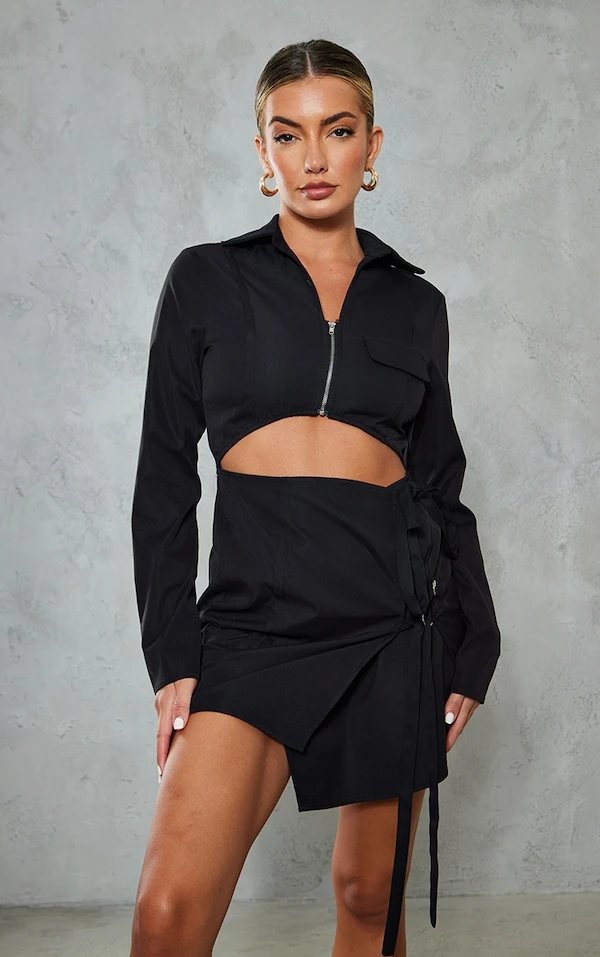 Trop mims la petite robe noire ! Avec sa découpe sur le ventre, sa matière tissée de couleur noire et son design à jupe nouée, elle est simple tout en étant originale. Il ne manque que des bottines et une paire de créoles pour finaliser ce look de casual babe canon !