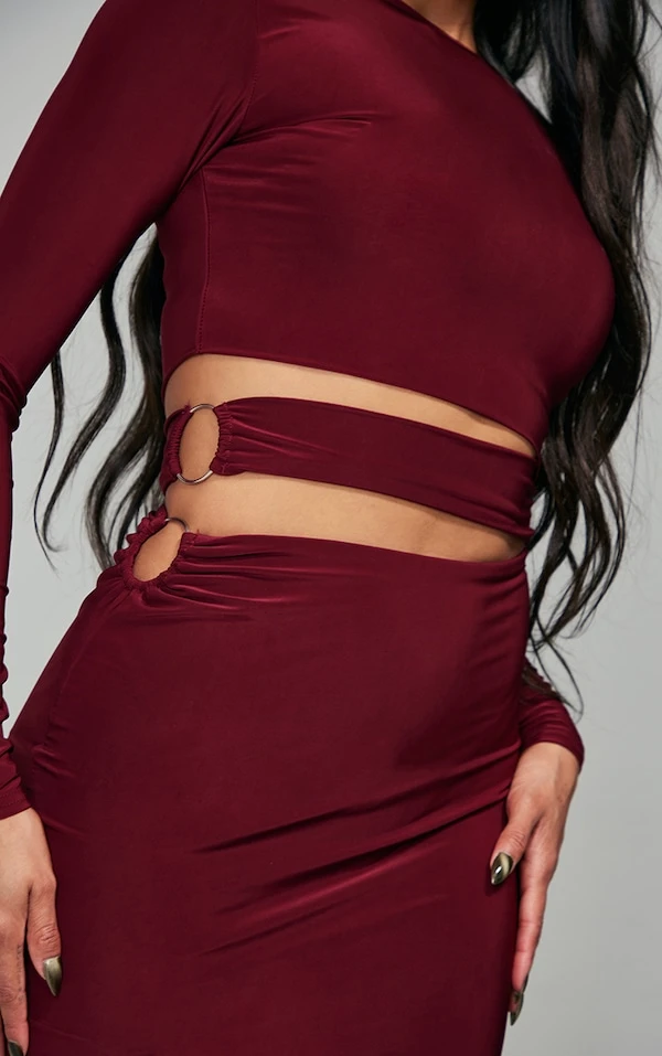 En amour avec cette robe à la coupe moulante. On aime sa couleur prune foncé, son design découpé au niveau de la taille et son détail à anneaux. En soirée, portez-la avec une paire de mules et quelques accessoires, ni plus ni moins !