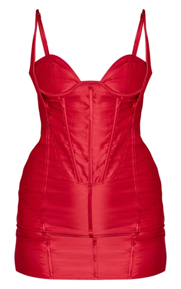 Robe moulante rouge satinée à corset et détail bonnets