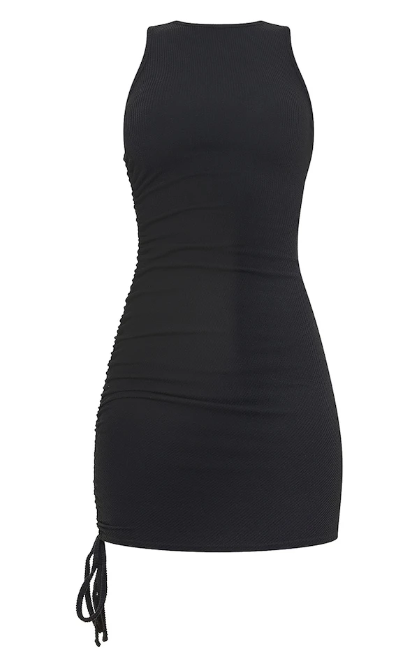 Robe moulante sans manches côtelée froissée noire à col nageur