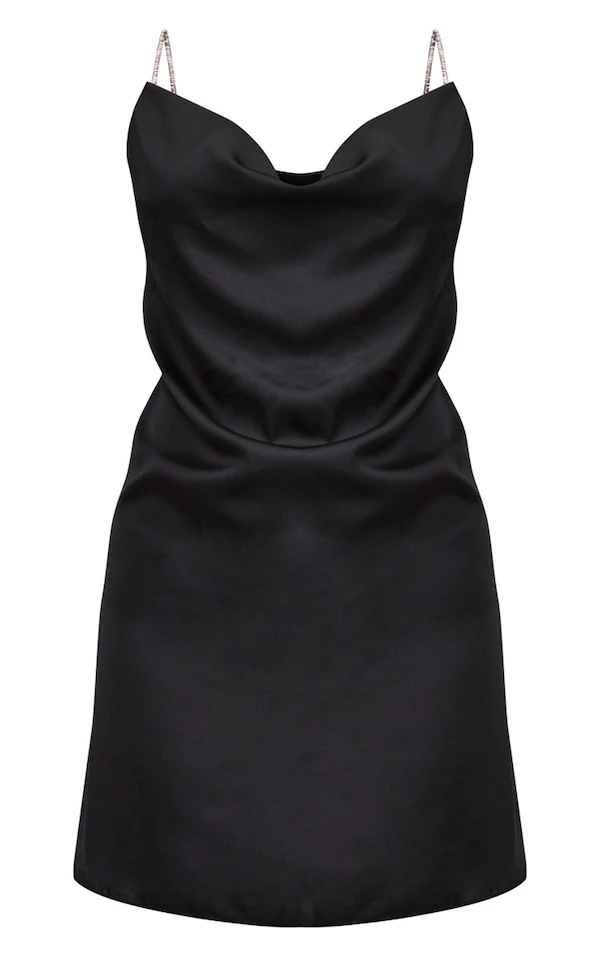 Des projets pour ce week-end ? Alors cette robe vous attend ! On crush sur sa matière satinée noire, ses bretelles strassées et son col bénitier. On y ajoute des accessoires métallisés et des talons hauts pour un look de déesse !