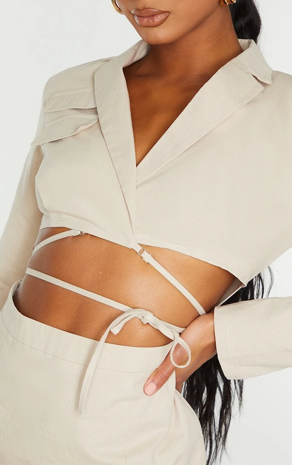 Robe moulante style blazer utilitaire gris pierre en maille tissée à découpes et taille nouée