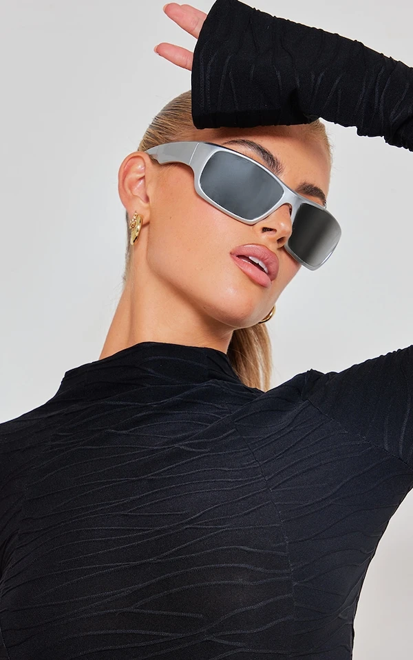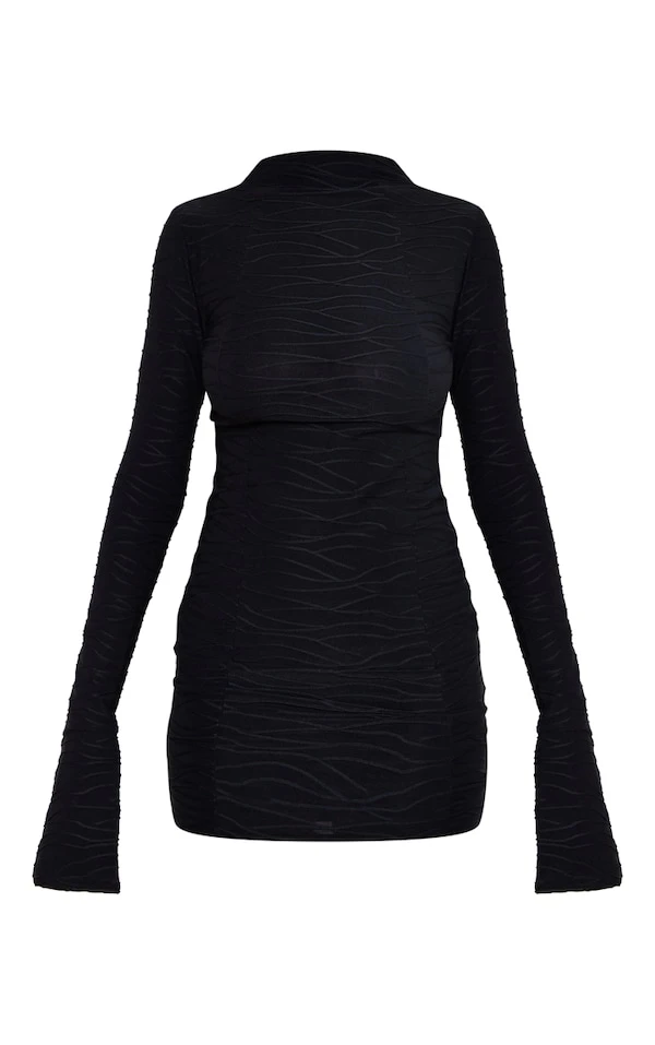 Robe moulante texturée noire à manches évasées