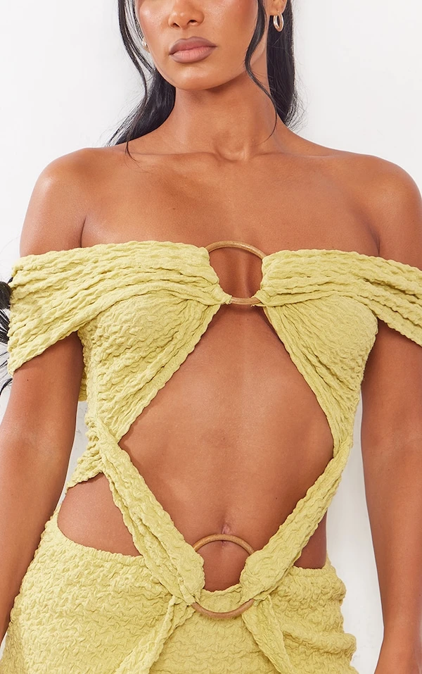 Une soirée à l’approche ? Cette robe sera parfaite pour l’occasion ! Avec sa matière texturée de couleur vert olive, son détail à anneaux et ses découpes, c’est un crush absolu. Plus qu’à enfiler une paire de talons hauts et quelques accessoires fins. Cette tenue est 100% validée !
