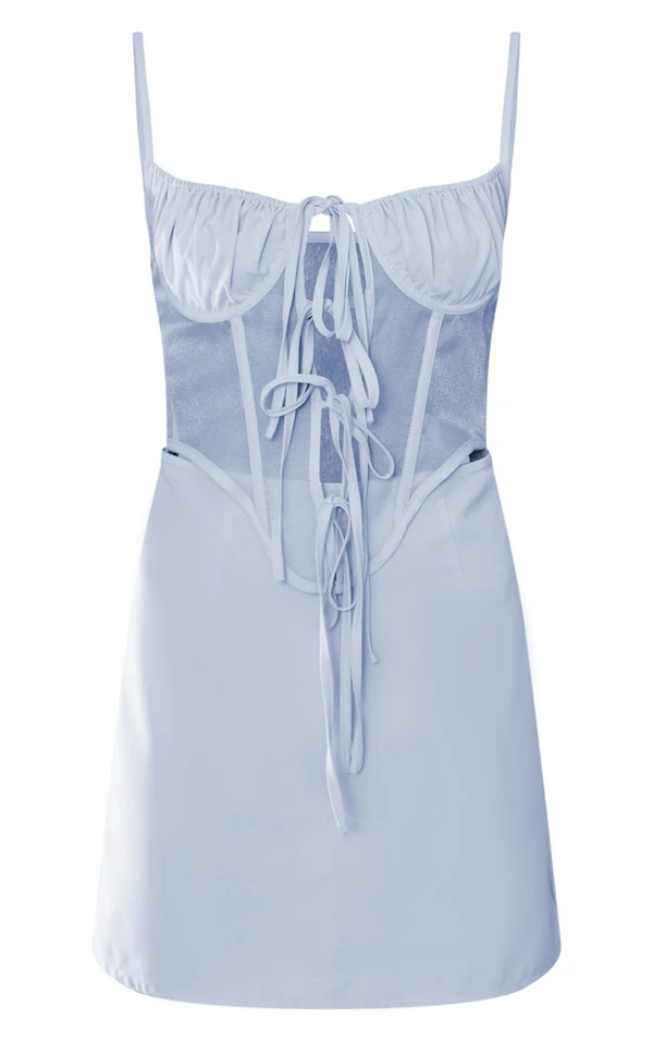 Robe moulante tissée bleu clair à corset en mesh lacé