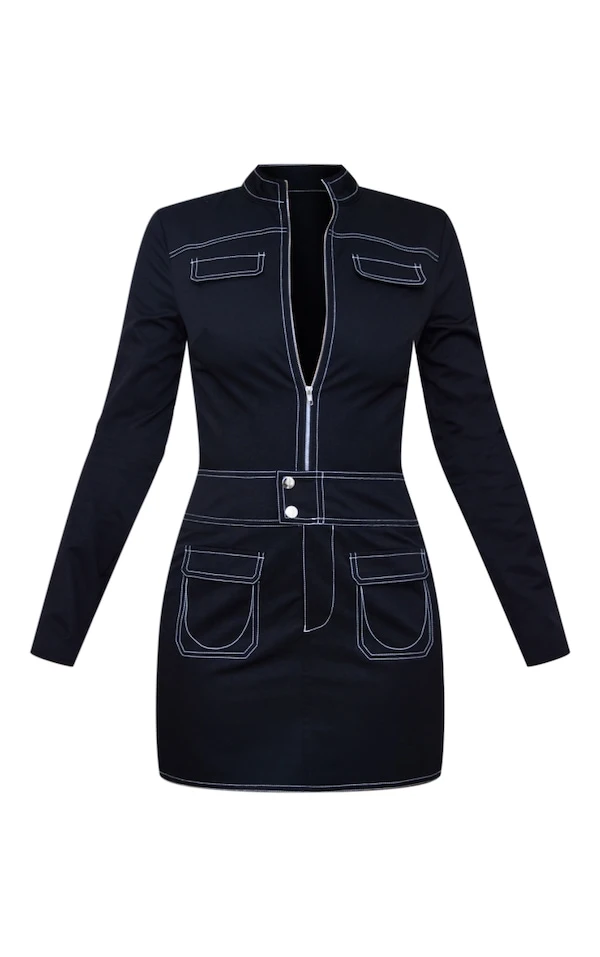 Direct dans le panier cette robe moulante. Son coloris noir se porte avec tout et on adore son design à coutures contrastantes qui structure tout le look. Plus qu’à enfiler une paire de mocassins, des chaussettes et un petit sac. Gorgeous !