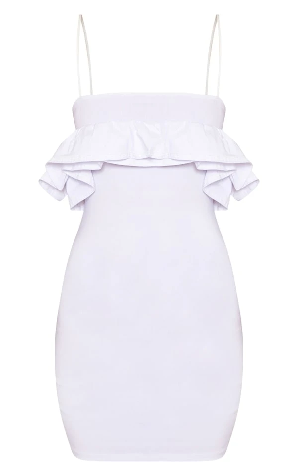 Robe moulante tissée stretch blanche à détail volanté