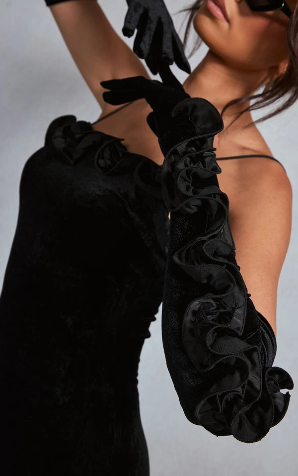 Crush ultime sur cette robe ! Avec sa coupe moulante très flatteuse, son velours noir très luxe et ses gants, on ne sait plus où donner de la tête. On la porte avec une paire de talons et quelques accessoires pour un look de soirée inoubliable. Go faire une entrée remarquée !