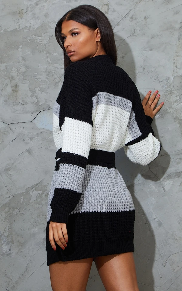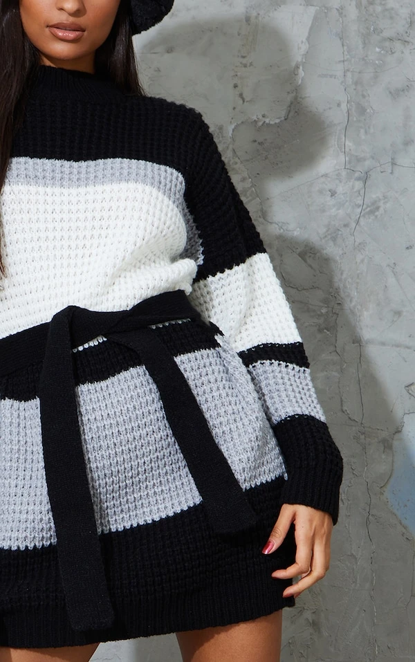 Robe pull en maille gaufrée style colourblock noir et blanc
