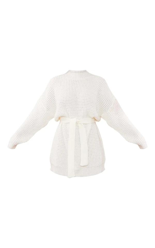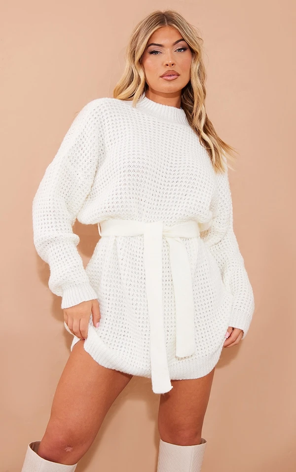 Robe pull en maille tricot gaufrée crème