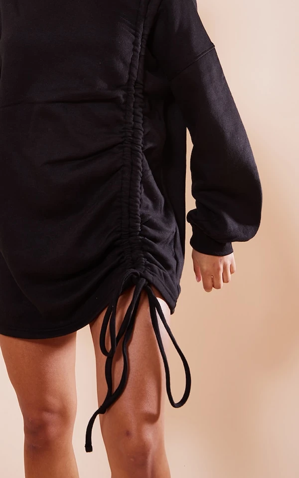 Robe pull oversize noire en sweat froncé à col ras