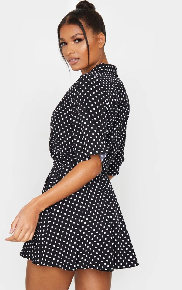 Love absolu sur cette robe rétro ! On a craqué pour son coloris noir, ses pois blancs et sa coupe super féminine et flatteuse. Il ne manque plus que des bottines et une veste en similicuir pour finaliser ce look de city girl.