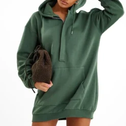 Coup de coeur sur cette robe sweat ! Avec son design ultra cosy, sa couleur bleu-vert et sa capuche, on valide à 100%. On l’enfile pour le week-end avec une paire de baskets pour un look parfait pour chiller. Vous êtes sublime en toute circonstance !