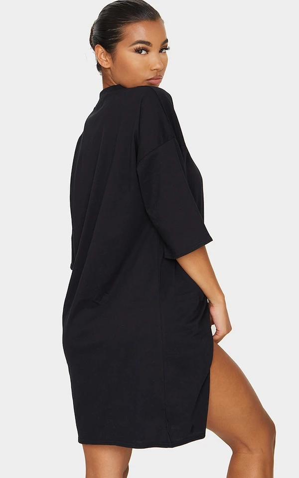 Robe T-shirt noire fendue oversize style boyfriend