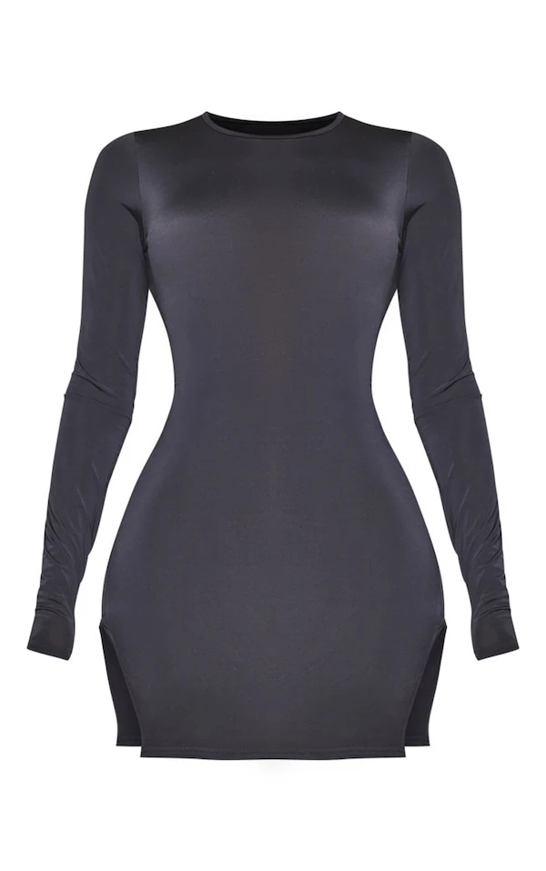 Tellement stylée dans cette robe ! On adore son coloris noir basique, sa matière très moulante et son design à côtés découpés. Plus qu’à enfiler une paire de cuissardes et quelques bijoux gold. Le look d’une queen !